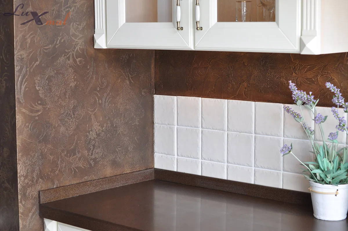 Struktura "gładka" powstaje przez mocne dociśnięcie pacy. Delikatne muśnięcia tworzą fakturę "rustykalną".