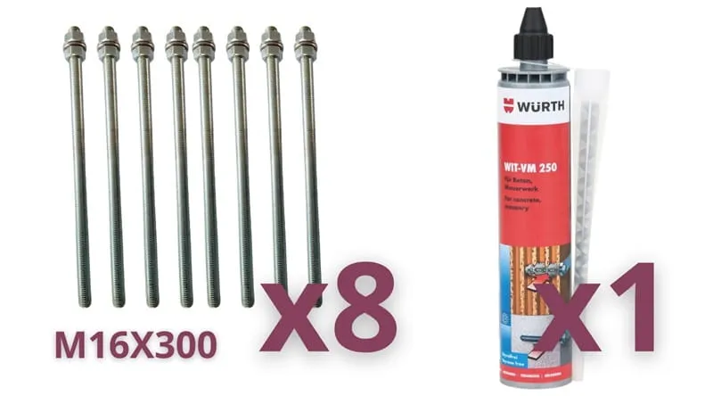 - Bramy 400-800 kg - kotwy M16